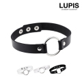 中央に存在感のあるシルバーリングを配置したチョーカーネックレス。