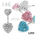 ハートプレートにキラキラ輝くカラーストーンを敷き詰めたボディピアス。