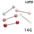 上品な色使いのパールカラーストレートバーベルボディピアス。