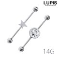 サークルの中にスターとスカルモチーフをデザインしたポップなロングバーベルボディピアス。