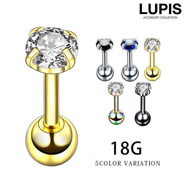 キラキラと煌めく多面カットを施したカラーストーンのストレートバーベルボディピアス。