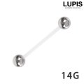 シャフト部分のみアクリル素材でできた、ストレートバーベルボディピアス。