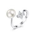 楕円形の立体パールと4粒のストーンをあしらったフォークリング