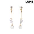 華奢なワイヤーの下で1粒のラインストーンとパールが揺れ動くエレガントなイヤリング。