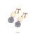 多角形型のウッドビーズとファーボールを合わせたイヤリング。