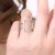異なる大きさのスクエアフレームを凸凹につなげた個性的なリング。