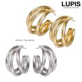 ワイドタイプのフープを3連重ねた、存在感のあるフープピアス。