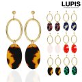 ゴールドのオーバルフレームとマーブルのオーバルプレートを連ねたオシャレなピアス。