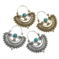 ターコイズ風ストーンを一粒あしらった、存在感のあるエスニックフープピアス。