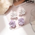 シェルのような光沢のある紫色のフェミニンなフラワーイヤリング。