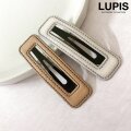 スクエアフレーム型のフェイクレザーパッチンヘアピン。