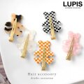 シェル・べっ甲・チェッカーフラッグのくまシルエットヘアクリップ。