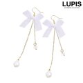 ホワイトのオーガンジーリボンがポイントのフックピアス。