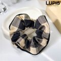 落ち着いた配色のブロックチェック柄が目を引くシュシュヘアゴム。