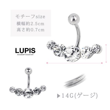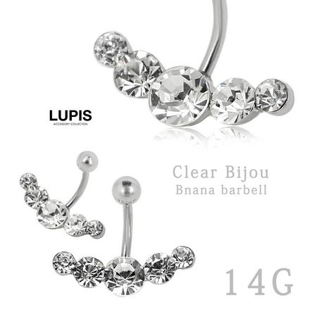 【14G】クリアビジューバナナバーベルボディピアス・へそピアス