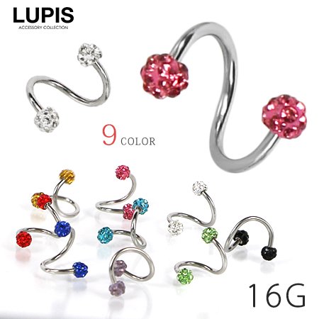 【16G】カラーパヴェスパイラルバーベルボディピアス
