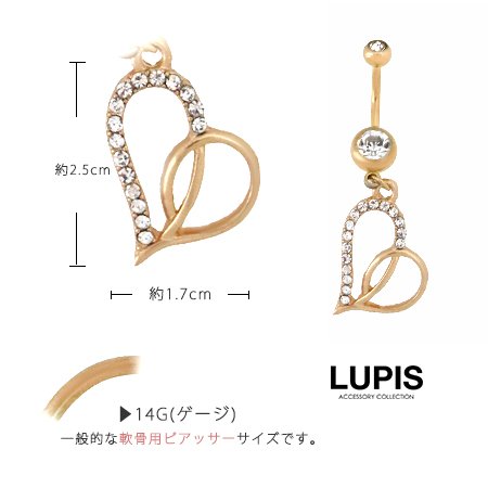 【14G】ゴールドハートバナナバーベルボディピアス・へそピアス