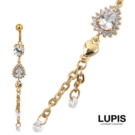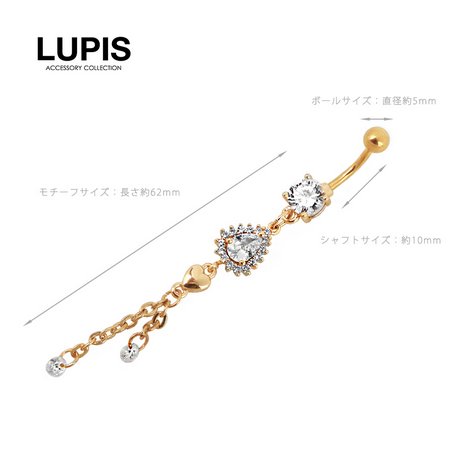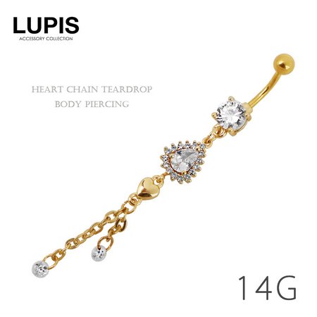 【14G】ラディアンスジュエルゴールドバナナバーベルボディピアス・へそピアス