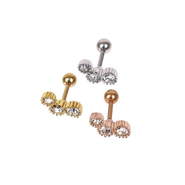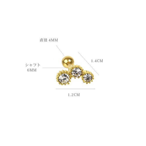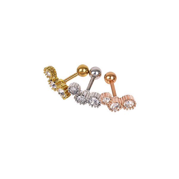 【16G】スリーストーンストレートバーベルボディピアス