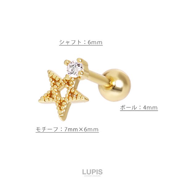 【16G】ワンポイントスターストレートバーベルボディピアス