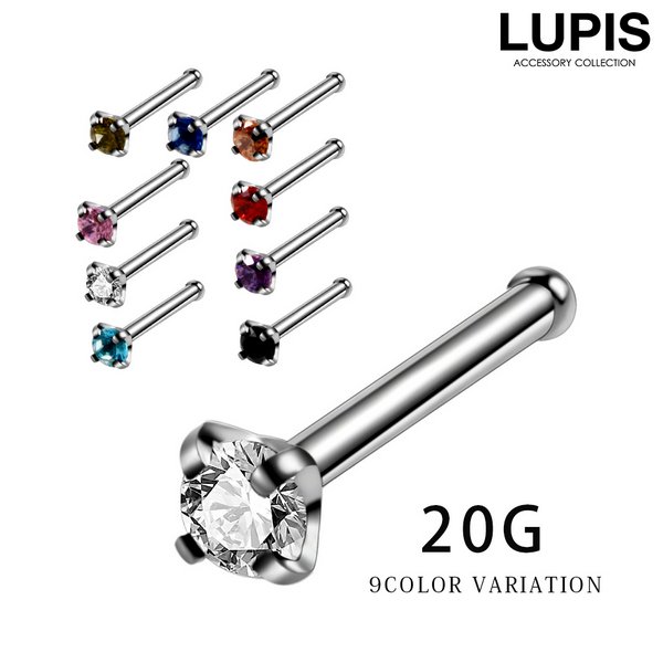 【18G】カラーストーンストレートノストリルボディピアス・鼻ピアス