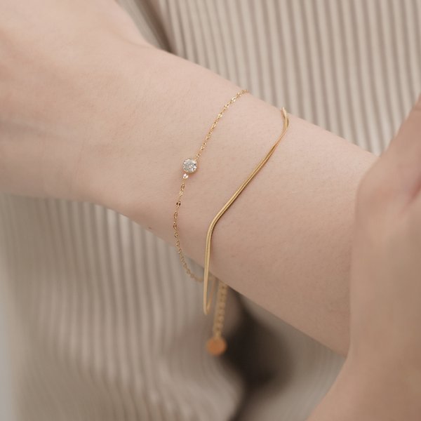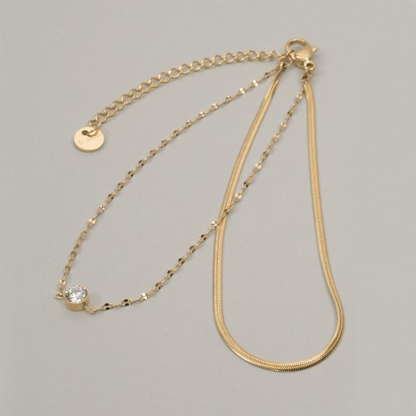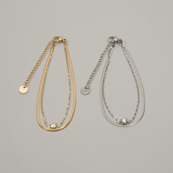 【金属アレルギー対応 316L】スネーク×ペタルチェーン2連ステンレスブレスレット