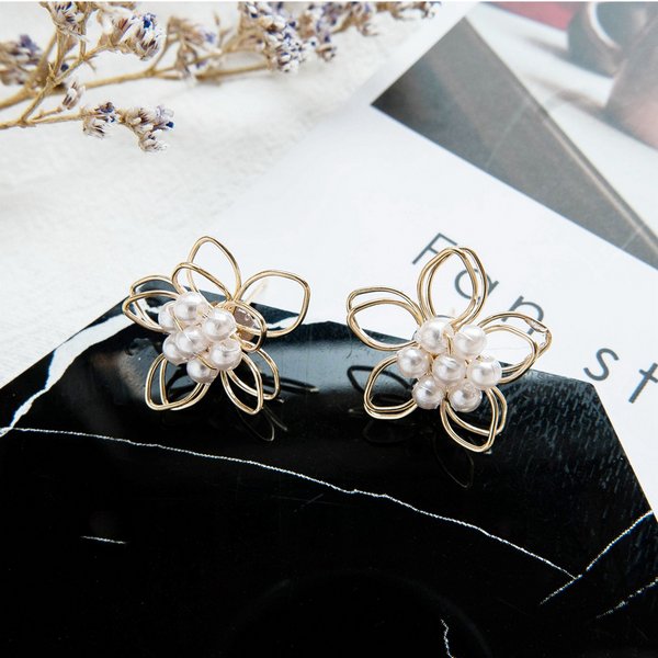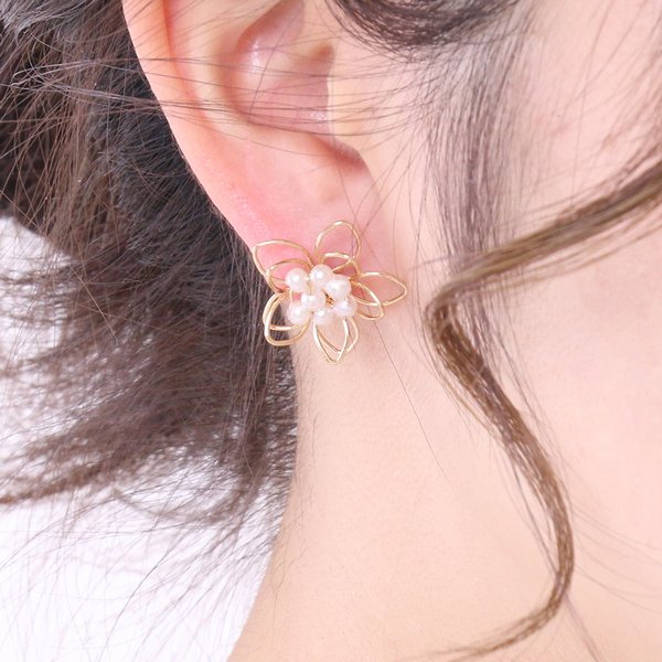 パールポイントワイヤーフラワーピアス