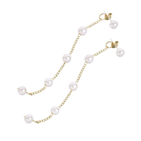 ロングパールチェーンバックキャッチピアス