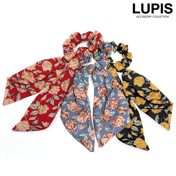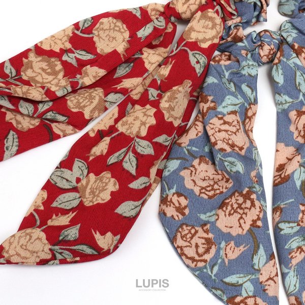 フラワー柄スカーフリボンシュシュ