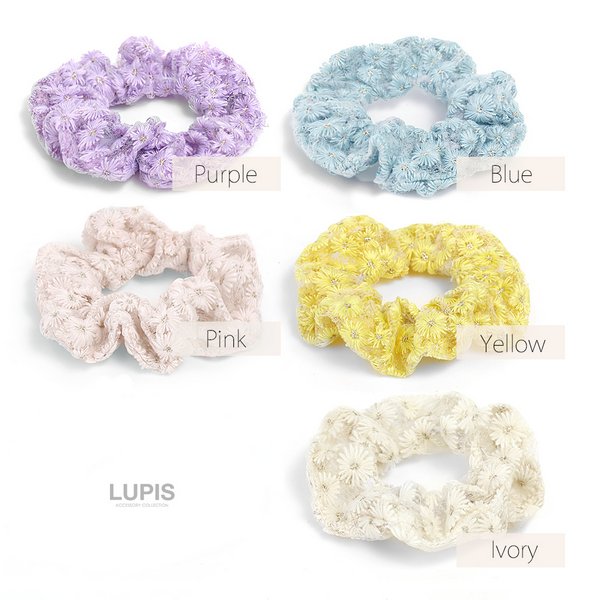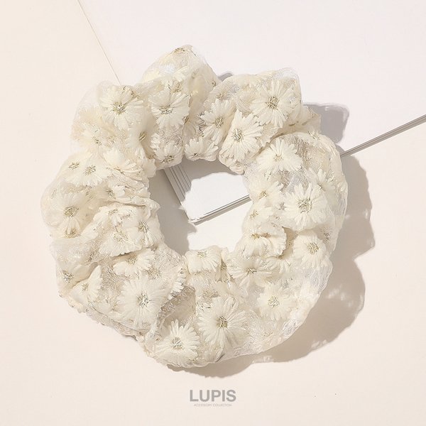 刺繍フラワーシュシュ