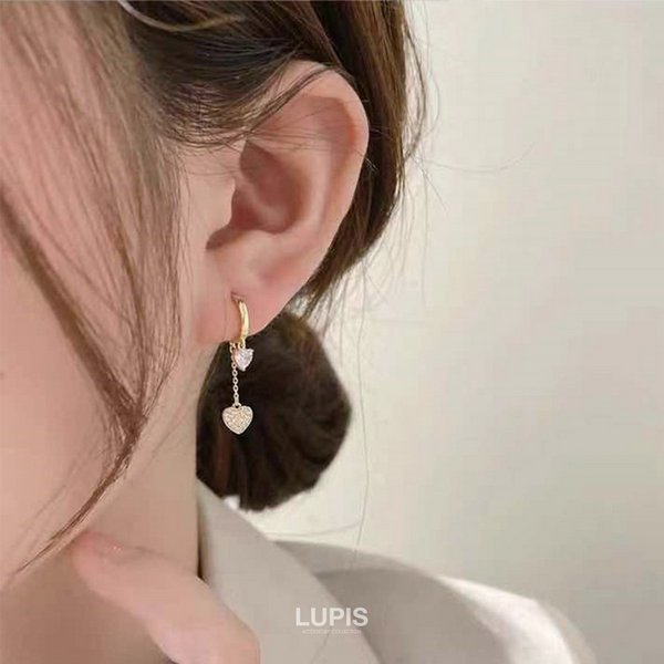 ショートチェーンハートフープピアス