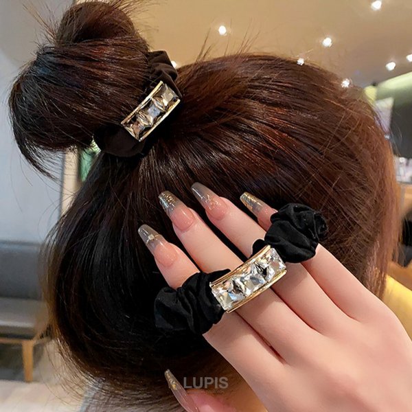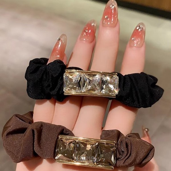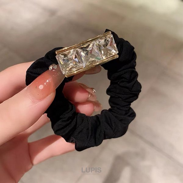 • スクエアビジューシュシュヘアゴム