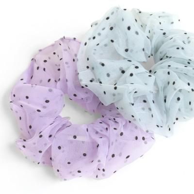 夏らしい透け感を楽しめるドットシュシュ。簡単ヘアアレンジのポイントに。