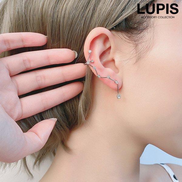 繊細な雰囲気の星座ピアス。シルバーリングと合わせて遊び心のあるスタイルに。