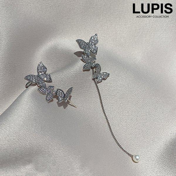 バタフライピアスとハートのボディピで甘すぎない華やかな耳元に