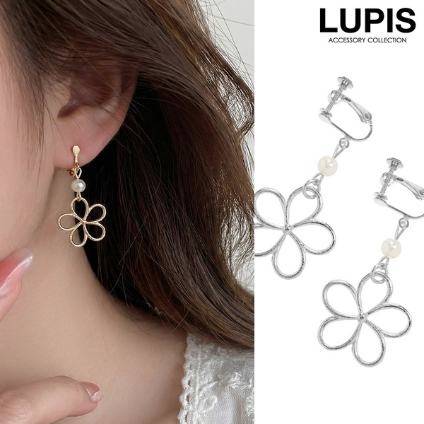 ワイヤーフラワーパールピアス
