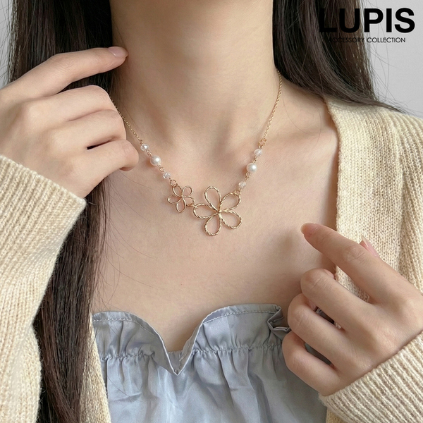 ゴールドフラワーパールネックレス